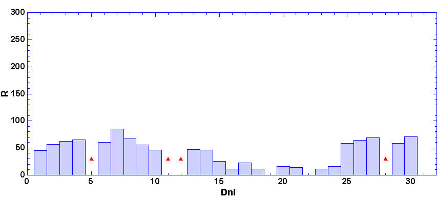 vždy od 6.00 hod UT daného dňa po 6.00 hod UT nasledujúceho dňa. Škála