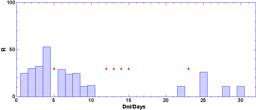 - dni, keď nebolo pozorovanie - zamračené, technické príčiny a pod.