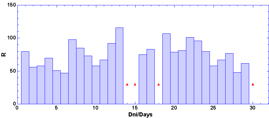 - dni, keď nebolo pozorovanie - zamračené, technické príčiny a pod.