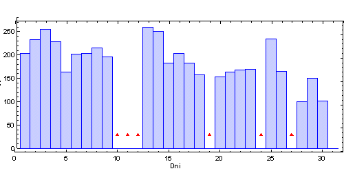 vždy od 6.00 hod UT daného dňa po 6.00 hod UT nasledujúceho dňa. Škála