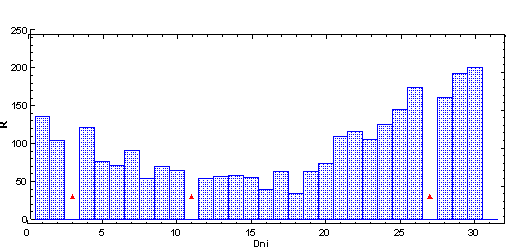 vždy od 6.00 hod UT daného dňa po 6.00 hod UT nasledujúceho dňa. Škála