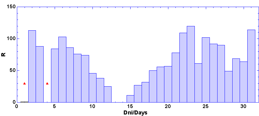 - dni, keď nebolo pozorovanie - zamračené, technické príčiny a pod.
