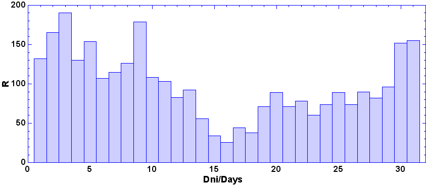- dni, keď nebolo pozorovanie - zamračené, technické príčiny a pod.