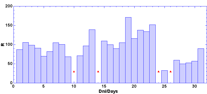 - dni, keď nebolo pozorovanie - zamračené, technické príčiny a pod.