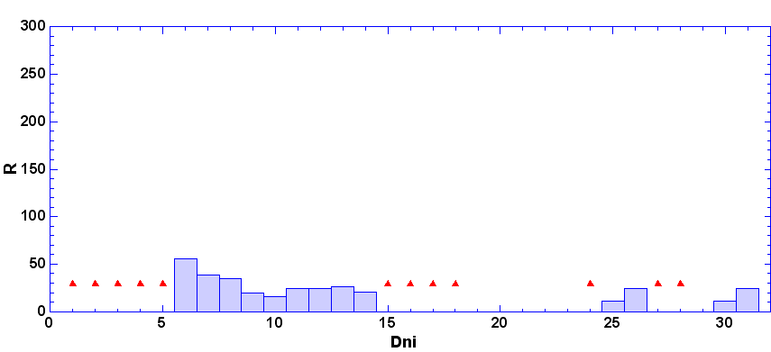 vždy od 6.00 hod UT daného dňa po 6.00 hod UT nasledujúceho dňa. Škála