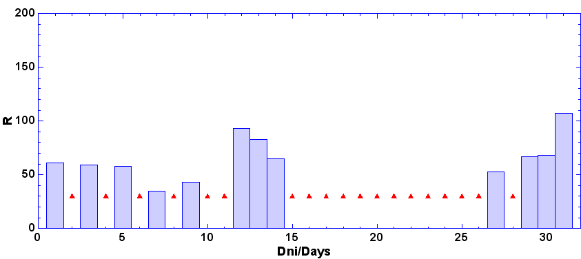 - dni, keď nebolo pozorovanie - zamračené, technické príčiny a pod.