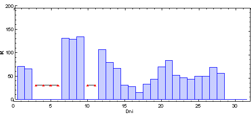 vždy od 6.00 hod UT daného dňa po 6.00 hod UT nasledujúceho dňa. Škála