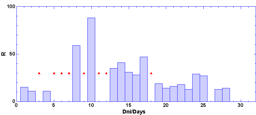 - dni, keď nebolo pozorovanie - zamračené, technické príčiny a pod.