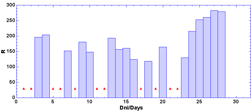 - dni, keď nebolo pozorovanie - zamračené, technické príčiny a pod.