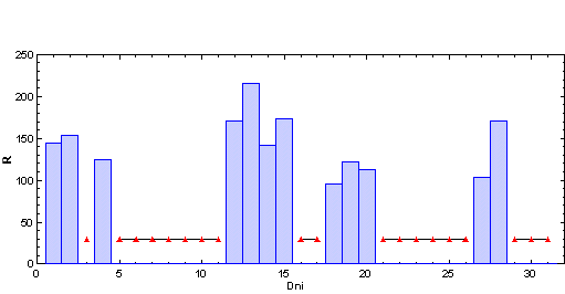vždy od 6.00 hod UT daného dňa po 6.00 hod UT nasledujúceho dňa. Škála
