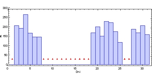 vždy od 6.00 hod UT daného dňa po 6.00 hod UT nasledujúceho dňa. Škála