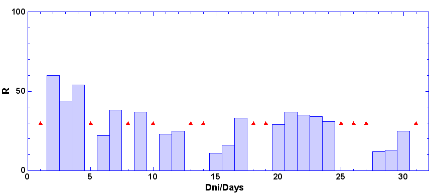 - dni, keď nebolo pozorovanie - zamračené, technické príčiny a pod.