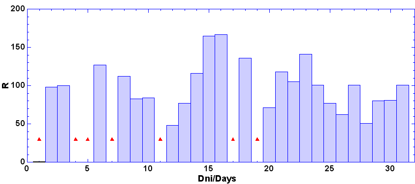 - dni, keď nebolo pozorovanie - zamračené, technické príčiny a pod.
