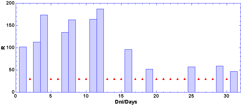 - dni, keď nebolo pozorovanie - zamračené, technické príčiny a pod.