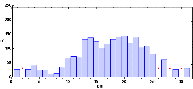 vždy od 6.00 hod UT daného dňa po 6.00 hod UT nasledujúceho dňa. Škála
