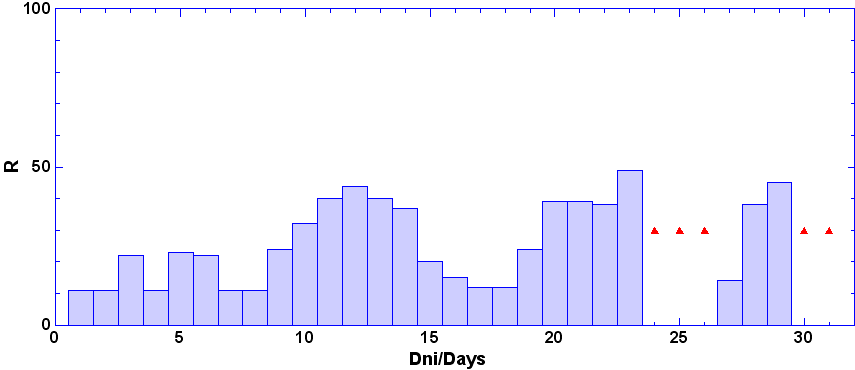 - dni, keď nebolo pozorovanie - zamračené, technické príčiny a pod.