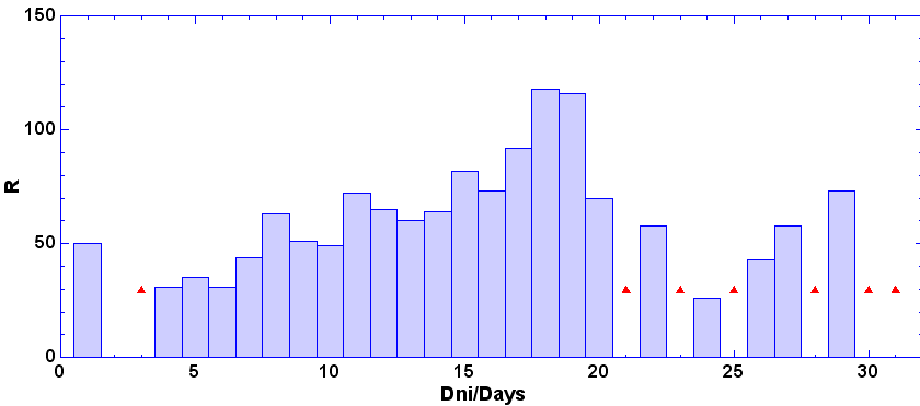 - dni, keď nebolo pozorovanie - zamračené, technické príčiny a pod.