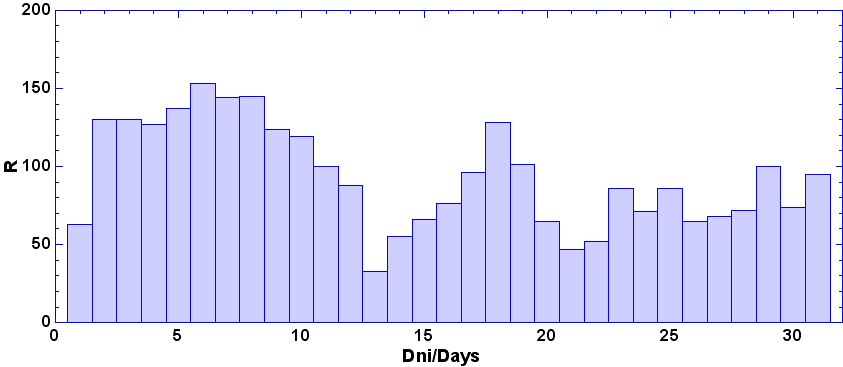 - dni, keď nebolo pozorovanie - zamračené, technické príčiny a pod.