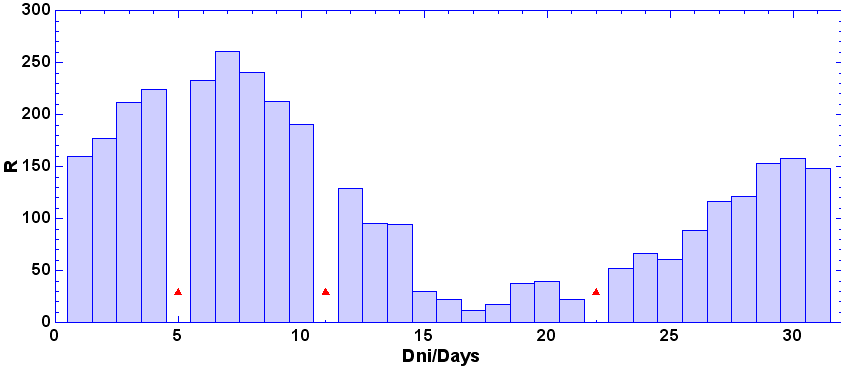 - dni, keď nebolo pozorovanie - zamračené, technické príčiny a pod.
