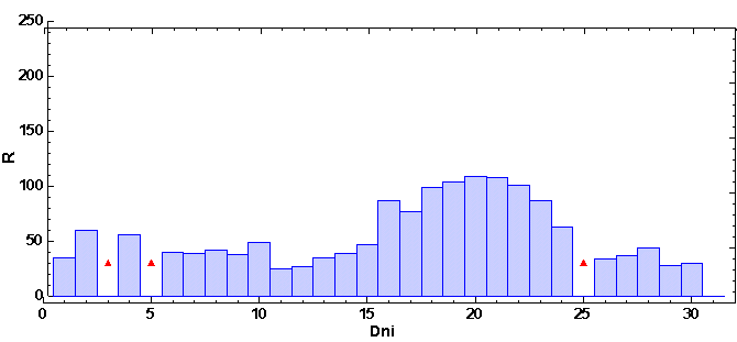 vždy od 6.00 hod UT daného dňa po 6.00 hod UT nasledujúceho dňa. Škála