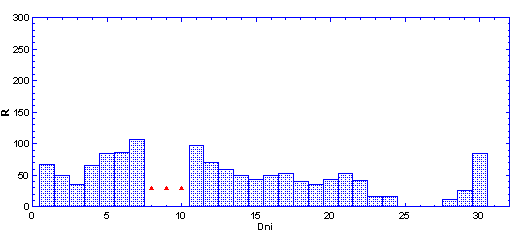 vždy od 6.00 hod UT daného dňa po 6.00 hod UT nasledujúceho dňa. Škála