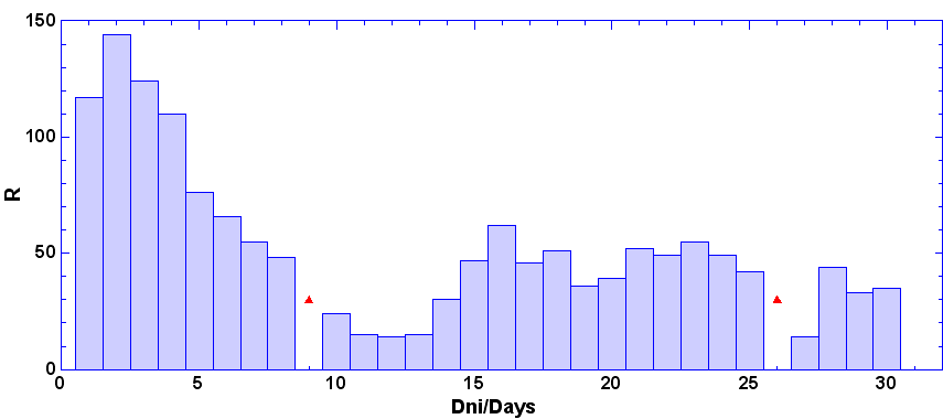 - dni, keď nebolo pozorovanie - zamračené, technické príčiny a pod.
