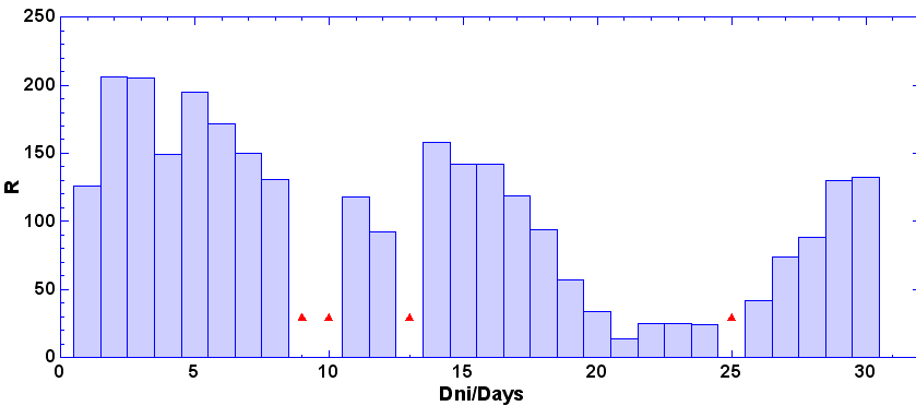 - dni, keď nebolo pozorovanie - zamračené, technické príčiny a pod.