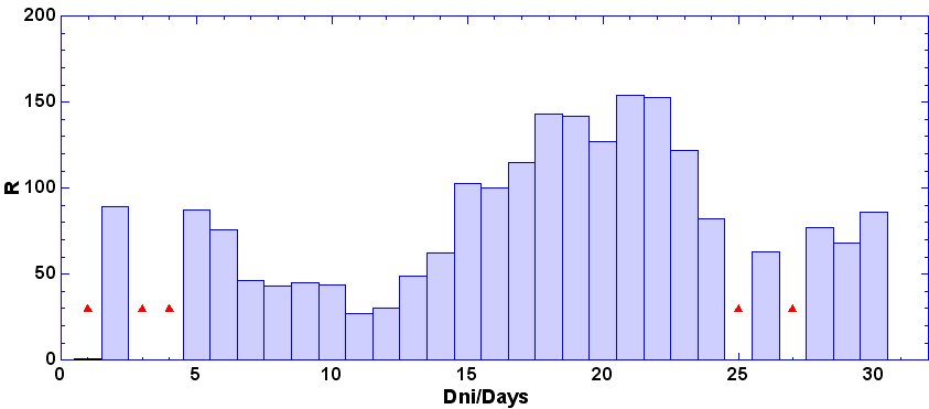 - dni, keď nebolo pozorovanie - zamračené, technické príčiny a pod.
