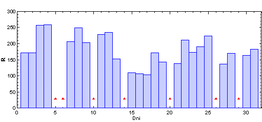 vždy od 6.00 hod UT daného dňa po 6.00 hod UT nasledujúceho dňa. Škála