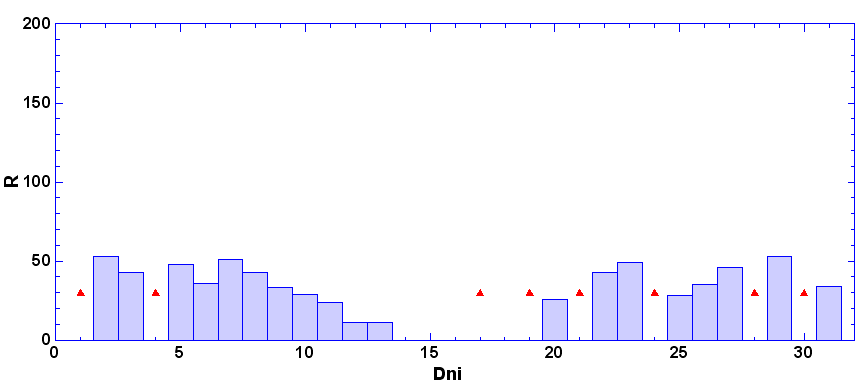 - dni, keď nebolo pozorovanie - zamračené, technické príčiny a pod.