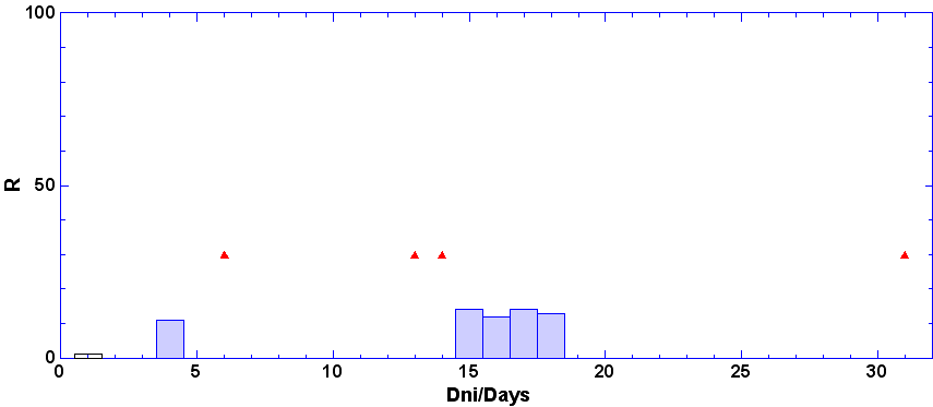 - dni, keď nebolo pozorovanie - zamračené, technické príčiny a pod.