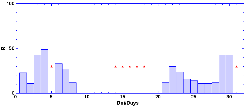 - dni, keď nebolo pozorovanie - zamračené, technické príčiny a pod.