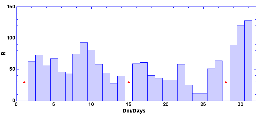 - dni, keď nebolo pozorovanie - zamračené, technické príčiny a pod.