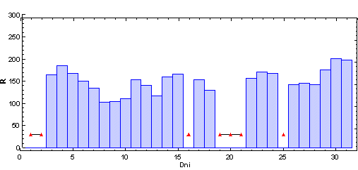 vždy od 6.00 hod UT daného dňa po 6.00 hod UT nasledujúceho dňa. Škála