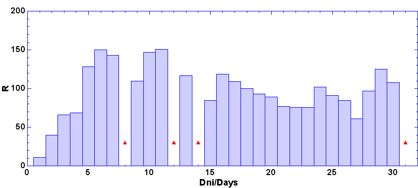 - dni, keď nebolo pozorovanie - zamračené, technické príčiny a pod.