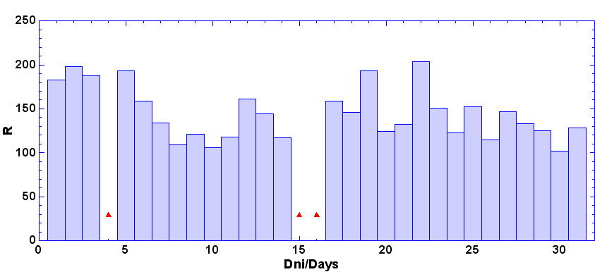 - dni, keď nebolo pozorovanie - zamračené, technické príčiny a pod.