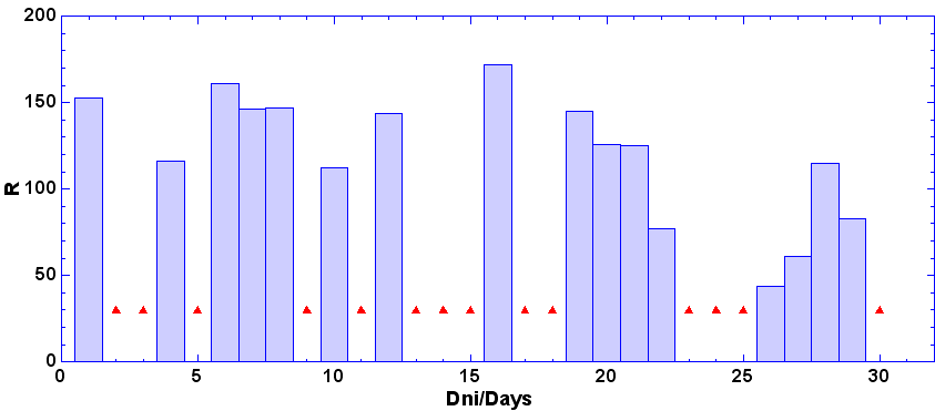 - dni, keď nebolo pozorovanie - zamračené, technické príčiny a pod.