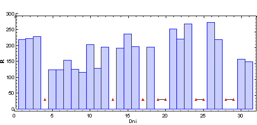 vždy od 6.00 hod UT daného dňa po 6.00 hod UT nasledujúceho dňa. Škála
