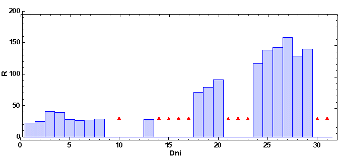 vždy od 6.00 hod UT daného dňa po 6.00 hod UT nasledujúceho dňa. Škála