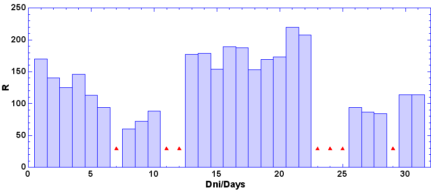 - dni, keď nebolo pozorovanie - zamračené, technické príčiny a pod.