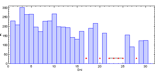 vždy od 6.00 hod UT daného dňa po 6.00 hod UT nasledujúceho dňa. Škála