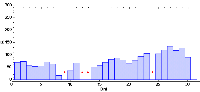 vždy od 6.00 hod UT daného dňa po 6.00 hod UT nasledujúceho dňa. Škála
