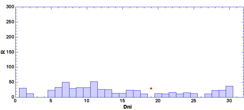 vždy od 6.00 hod UT daného dňa po 6.00 hod UT nasledujúceho dňa. Škála