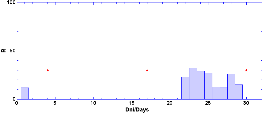 - dni, keď nebolo pozorovanie - zamračené, technické príčiny a pod.