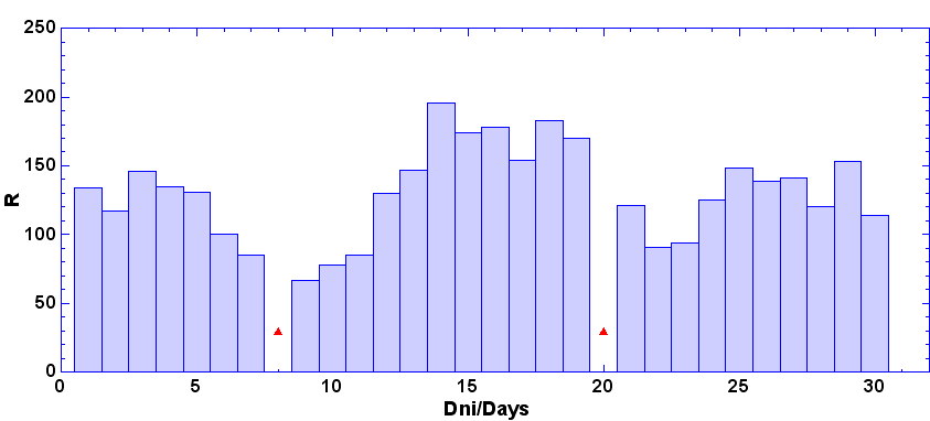- dni, keď nebolo pozorovanie - zamračené, technické príčiny a pod.