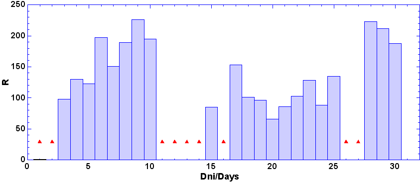 - dni, keď nebolo pozorovanie - zamračené, technické príčiny a pod.